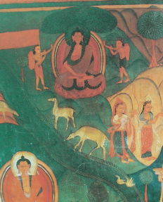 現技法人物造型逼真.富神韻,主尊佛像常以自然景物為背景.如.右二圖
