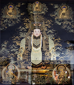 五.台灣也有神像以唐卡的畫法繪製,例如彰化埤頭合興宮的媽祖神像,廟方請青海藏族畫師所繪