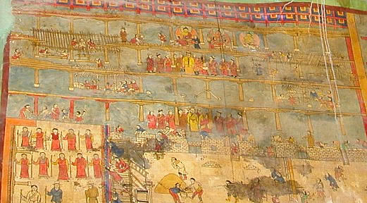 各寺院的經堂.佛殿.迴廊等等可用的璧面,都有不同的彩繪主題,除了佛典故事外,也描述歷史事蹟.民俗.文藝體育活動.