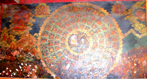 2.門廊邊繪四大天王等.佛殿的兩邊繪製菩薩如文殊.觀音.阿羅漢.壇城圖...,甚至傳承上師或高僧