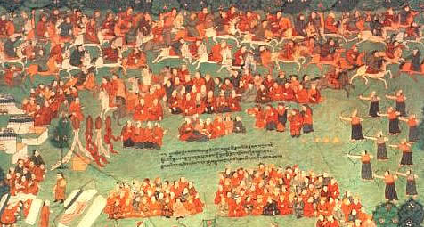 五世達賴朝覲順治皇帝圖(布達拉宮) 寺院建築施工(薩迦寺)