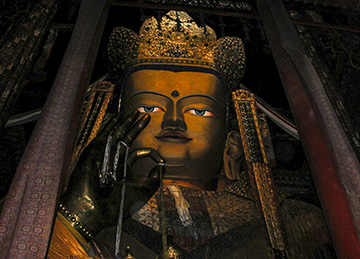 上圖:強巴佛是未來佛,即現在的彌勒菩薩,高26.2公尺,為