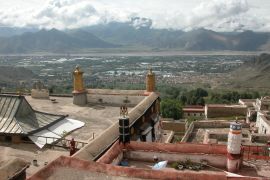 甘丹頗章宮,右後方山腰有座展佛台...構成頗為壯觀的建築群.