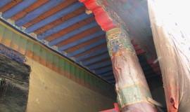 | 佛寺建築藝術發展史與特色: 隨著佛教的傳播,寺院建築藝術也跟隨展開,大概可分為三個階段: 一.西元七世紀~九世紀中葉,佛寺建築相當多,例如昌珠寺.雍布拉康.帕巴寺.大小昭寺.桑耶寺...,除個 別寺院如桑耶寺等外,大多規模不大的佛殿和經堂,往往只是座孤立的佛殿,前面很少有經堂.僧舍.扎倉等附屬建物.此時期以土.石.木構造為主,採亂石泥漿砌牆,間或加便瑪(紅柳);木造建築,柱梁幾乎是原材,柱頭僅有簡單彩色,建造法為<四柱八梁三十三椽>,開始融合與採納印度和內地的建築技術. 二.西元十世紀~西元十七世紀,佛寺建築在規模.數量都有大幅改變,佛殿.經堂面積起顯著變化,扎倉建 築也隨之興起,此時期的木造建築,柱梁雕飾漸為細膩,建築型式有漢藏式.塔寺合一式.洞窟式....,各寺院均無統一的格局,規模較大,著名寺院有薩迦寺.楚布寺.哲蚌寺.白居寺.扎什倫布寺.色拉寺... 三.西元十七世紀中葉以後,著重在寺院的擴建.維修,寺院建築上的經濟效益和藝術要求高,梁柱規格 化和柱頭.斗拱.托木.梁檁.壁面彩繪與雕刻,屋頂盛行鎏金銅瓦替代先前的琉璃瓦及鎏金的法輪.寶幢.八寶等裝飾.構成富麗堂皇的建築藝術. |