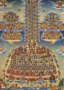 皈依境:即是傳承樹.如意樹或會聚樹,有時又稱資糧田,是藏傳佛教修習者作為日常修持.頂禮.觀想.供養等積聚福德智慧的畫像.藏傳各教派都有其傳承的皈依境,此為格魯巴的.